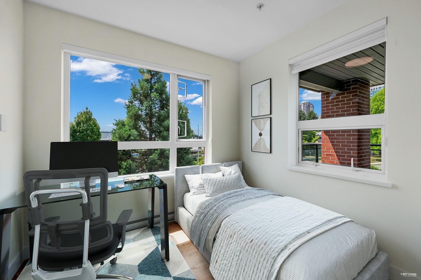 Welcome to Red Brick by Amacon. This centrally located move in ready 3 bed +flex, 2 bath corner unit offers the perfect blend of space, style, and function. Recently updated with new lighting, bedroom flooring, custom blinds & fresh paint, the bright open layout features engineered hardwood, quartz counters, stainless steel appliances, & a gas range. A spacious, covered patio for family BBQ. The flex room works well as an office or pantry. Amenities include a playground, fitness center, EV charging, car wash, party lounge, and games room with Table tennis. Includes 1 parking stall & 1 locker. Steps to Edmonds SkyTrain, parks, schools, shopping, and the new ice rink. This home is perfect for growing families or professionals working from home.