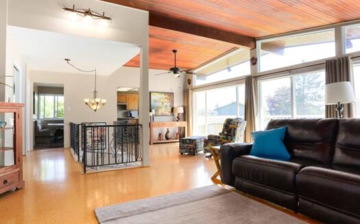 Absolutely terrific 2 level home featuring fabulous main floor with 3 bedrooms, spacious kitchen with eating nook; living & dining with vaulted ceilings cork flooring, fireplace and floor to ceiling windows; Lovely partially covered wrap around deck. Downstairs boasts an extra large family room, summer kitchenette, large bedroom, bathroom with large walk in shower, mud room, and laundry. Great space for inlaws, teens or potential to suite (see Delta Bylaws). Spacious foyer and an office or flex room as you enter the home. Loads of room in this lovely yard for gardens, sheds, RV, trampolines and lounge chairs. Rear access from Central Avenue. Great cul-de-sac location in Hawthorne area close to bus, schools, shops, parks and recreation.